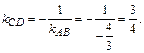 4. Так как высота CD перпендикулярна стороне АВ, то угловые коэффициенты этих прямых обратны по величине и противоположны по знаку, т.е.
