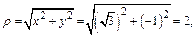 Решение. Используя формулы (1), находим полярный радиус и полярный угол точки М: