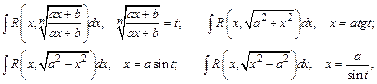 , не всегда очевидна. Однако для некоторых часто встречающихся классов функций можно указать такие стандартные подстановки: