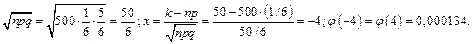 Пример 4. Игральную кость подбрасывают 500 раз. Какова вероятность того, что шестерка при этом выпадет 50 раз?