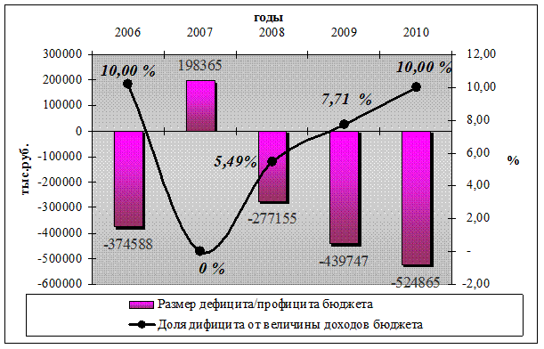 Рисунок 2.6 - Дефицит/профицит бюджета ВГО в 2006-2010 гг.