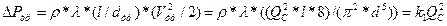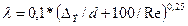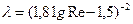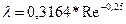 зависит от Re и может быть подсчитан по формуле Никурадзе