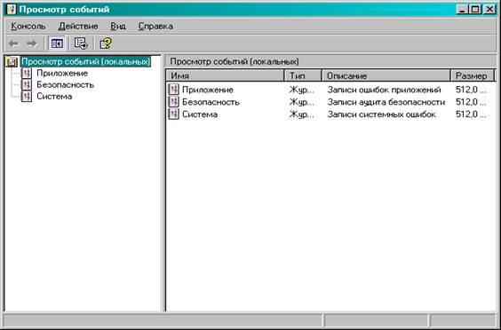 Аудит — это процесс, позволяющий фиксировать события, происходящие в ОС. Сообщения о критических событиях, таких как переполнение жесткого диска или сбой в питании компьютера, выдаются на экран дисплея. Однако большинство событий записывается в три журнала событий (рис. 1.1):