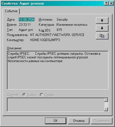Найдя пару событий 592 и 593 с одинаковым кодом процесса, можно определить общее время работы того или иного приложения, которое указывается в поле имени файла образа. В поле имени пользователя хранится информация о том, кто запустил приложение. По полям кода входа можно отыскать соответствующее событие регистрации с кодом 528 и выяснить все подробности о сеансе, в котором запускалось приложение. Для идентификации процесса, запустившего новый процесс, можно использовать поле кода создателя процесса. Достаточно найти предыдущее событие с кодом 592 с этим же кодом процесса.