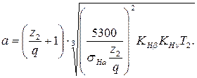 Предварительный расчет межосевого расстояния а из условия прочности по контактным напряжениям с учетом того, что передача нарезана без смещения, можно выполнить по формуле [1]: