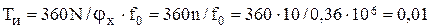 Определить время измерения Tи цифрового интегрирующего фазометра, если он имеет разрешающую способность n = 10 ед/град и частоту опорного квар-цевого генератора f0 = 0,36 МГц. Найти также относительную погрешность измерения фазового сдвига jx = 126,5°, если нестабильность частоты опорного кварцевого генератора d0 = ±2×10-5.