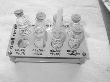 Для определения резус-принадлежности ускоренным методом на плоскости при комнатной температуре могут быть использованы поликлональные сыворотки анти-D с неполными антителами, приготовленные в комбинации с коллоидами (альбумином, полиглюкином).