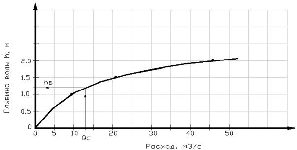 График зависимости расхода от глубины воды Q=f(h) необходим для определения бытовой глубины hб во время расчетного паводка в нестесненном живом сечении водотока после пересечения его дорогой. В качестве расчетного расхода принимают сбросной расход, на который проектируется водопропускное сооружение.