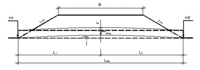 f – строительный подъем середины трубы, учитывающий большую осадку середины трубы под действием нагрузки от насыпи.