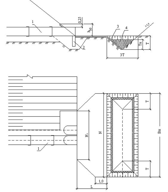Укрепление русла на выходе заканчивается предохранительным откосом 3 (рис.2.5.1).