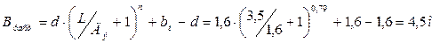Ширина конца укрепления по формуле (2.5.1):
