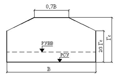 Условная высота насыпи над уровнем РУВВ (рис.3.4.4):
