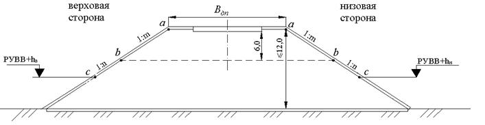Возможен вариант поперечного профиля насыпей подходов с бермами с верховой стороны или с верховой и низовой стороны (рис. 3.4.5). В этом случае заложение сухого откоса на участке ас назначается по высоте насыпи выше бермы и внизу грунта.