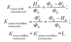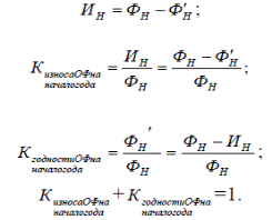 К показателям состояния основных фондов относятся коэффициенты годности и износа, которые исчисляются на начало и конец года.
