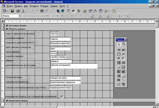 · Access откроет окно с пустым бланком формы в режиме конструирования.