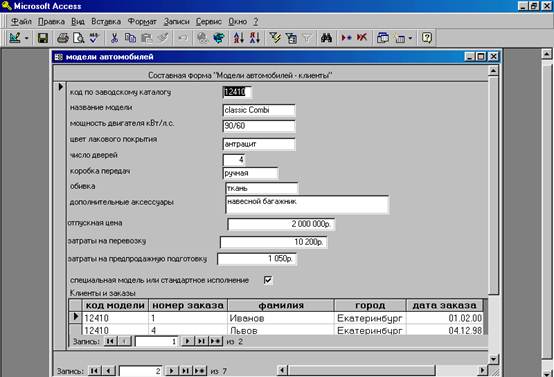 Рис. 6. Составная форма для таблиц Модели автомобилей и Клиенты
