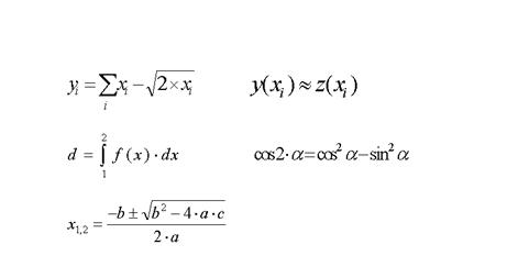 Используя возможности редактора формул, наберите предложенные ниже формулы. Для этого воспользуйтесь командой меню Вставка -Объект. В диалоговом окне Объект выберите тип объекта Microsoft Equation. В окне Equation выберите подходящую конструкцию для вашей формулы.