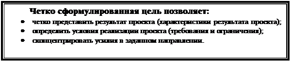 Цель проекта – желаемый результат деятельности, достигаемый в пределах установленного интервала времени. От того, насколько правильно поставлена цель, зависит скорость и качество ее достижения.