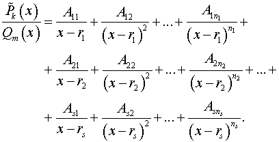 , то разложение на элементарные дроби имеет вид