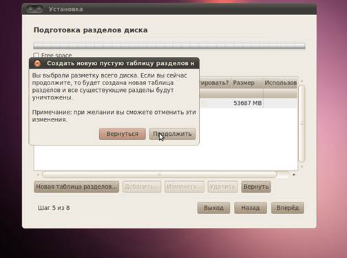 - Если у вас один жёсткий диск, и он совершено пустой, то первым делом нужно будет создать новую таблицу разделов. Для этого выберите свой пустой диск, который обычно обозначается как HDA (для IDE) или SDA (для SATA, SCSI и USB), и нажмите кнопку Новая таблица разделов. Если вы устанавливаете Ubuntu на второй жёсткий диск, а на первом у вас установлена Windows, то второй диск, скорее всего, будет обозначен «HDB» или «SDB» (или наоборот, второй диск будет HDA или SDA). Появится предупреждение о возможной потере данных. Если у вас несколько дисков, убедитесь, что вы выбрали нужный, и нажмите «Продолжить».