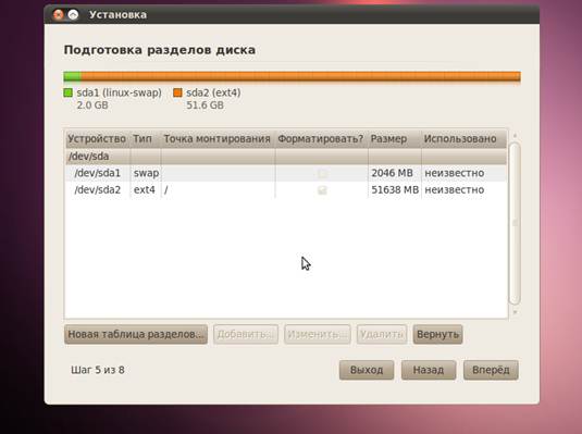 - Проверьте, чтобы разметка диска выглядела следующим образом: