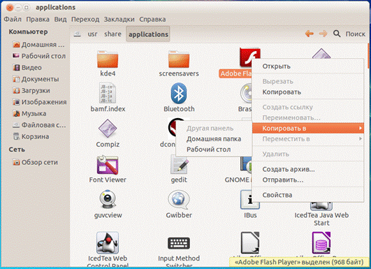 - Создание ярлыков на рабочем столе в среде ОС Linux Ubuntu несколько отличается от привычной нам Windows. Для создания ярлыка необходимо перейти в папку Applications, в которой хранятся все установленные на компьютере программы. Для этого необходимо зайти в «Компьютер», в появившемся окне в верхнем поле меню выбрать пункт «Переход», там выбрать «Адрес». В поле ввести /usr/share/applications/