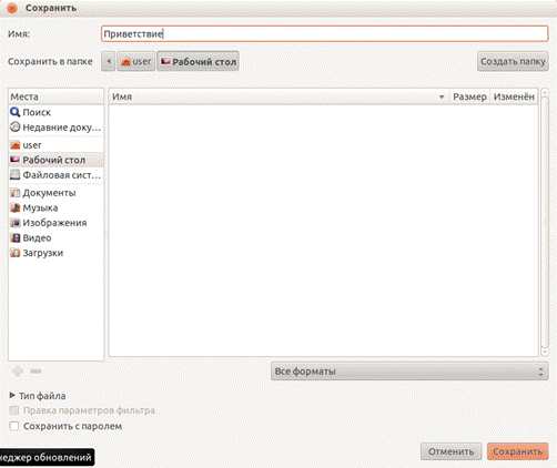 - Сохраните только что созданный текстовый файл на рабочий стол, присвоив ему название «Приветствие»