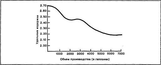 Рис. 8.2. Аналоговая модель (график, являющийся аналоговой моделью, показывает зависимость между количеством произведенной краски и издержками в расчете на 1 галлон).