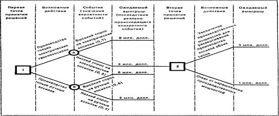 Определив ожидаемое значение каждой альтернативы и расположив результаты в виде матрицы, руководитель без труда может установить, какой выбор наиболее привлекателен при заданных критериях. Он будет, конечно, соответствовать наивысшему ожидаемому значению. Исследования показывают: когда установлены точные значения вероятности, методы дерева решений и платежной матрицы обеспечивают принятие более качественных решений, чем традиционные подходы.
