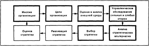 Формулирование стратегического плана представляет собой тщательную, систематическую подготовку к будущему (рис. 9.2.). Если всем руководителям следует в той или иной степени заниматься формальным стратегическим планированием, то составление стратегических планов для всей организации является, в первую очередь, обязанностью высшего руководства. Руководители среднего и низшего звена участвуют в этой работе, предоставляя соответствующую информацию и обеспечивая обратную связь.