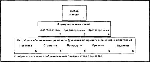В крупных организациях, занимающихся сложным формальным стратегическим планированием, руководство почти всегда оформляет планы в письменном виде; могут существовать тысячи письменных документов, относящихся к планированию. Однако освещение специфики планирования и его многочисленных вариантов выходит за рамки данной работы. Мы сосредоточим внимание на ключевых компонентах организационного планирования: целях, руководствах для принятия решений и практических действий, охватывающих стратегии, политику фирмы, процедуры, правила и бюджеты; а также основные этапы процесса планирования. Ключевые компоненты будут рассмотрены детально, начиная с целей и миссии организации.
