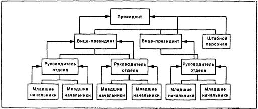 Рис. 10.2. Иерархия целей при МВО. Цели каждого руководителя должны обеспечивать достижение цели его непосредственного начальника. Цели вырабатываются сверху вниз - по цепи инстанций.