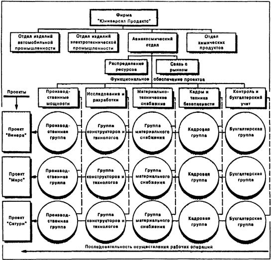 Рис. 12.9. Матричная структура авиакосмического отделения фирмы "Юниверсал Продактс".