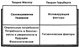 Рис. 13.3. Соотношение теорий потребностей Маслоу и Герцберга.