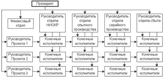 · опасность возникновения конфликтов между руководителями проектов и начальниками подразделений, из которых они получают специалистов для реализации своих проектов;