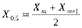 6.3.2 Выборочная медиана при нечетном объеме выборки n = 2m – 1 равна среднему члену вариационного рада Х 0,5 = Хm. При четном объеме n = 2m медиана равна среднему значению двух средних значений вариационного ряда:
