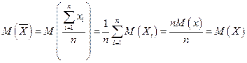 1. Несмещенность оценки. Оценка называется несмещенной, если ее математическое ожидание равно оцениваемому параметру генеральной совокупности:
