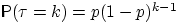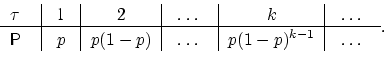 . Случайная величина с таким распределением имеет смысл номера первого успешного испытания в схеме Бернулли с вероятностью успеха