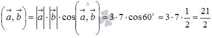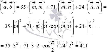 . Осталось применить формулу для вычисления скалярного произведения через длины векторов и косинус угла между ними: