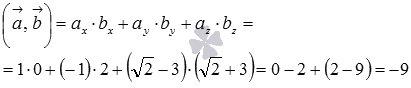 Так как скалярное произведение равно сумме произведений соответствующих координат, то