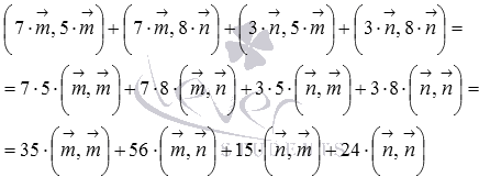Сейчас рассмотрим пример, требующий сначала применить свойства скалярного произведения, и только затем переходить к вычислению.