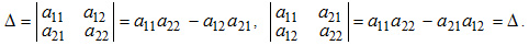 Определитель не изменится, если все строки заменить соответствующими столбцами и наоборот.
