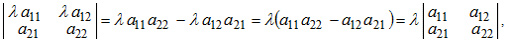 Множитель, общий для всех элементов строки или столбца, можно выносить за знак определителя.