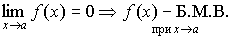 О п р е д е л е н и е 1. Функция y = f (x) называется бесконечно малой величиной (Б.М.В.) при
