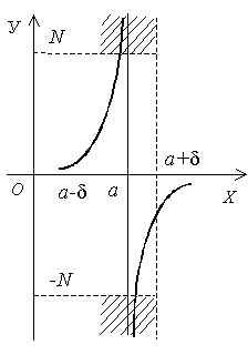 , соответствующие значения функции будут по абсолютной величине больше сколь угодно большого числа N