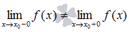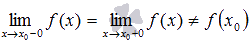 функция имеет неустранимый разрыв первого рода, если пределы слева и справа НЕ равны, то есть
