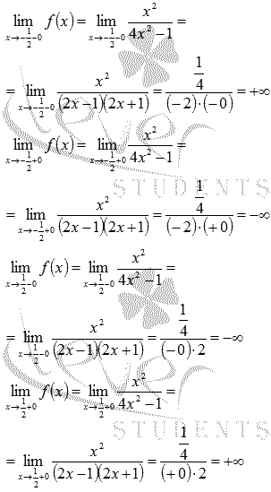 Исследуем поведение функции при приближении к этим точкам слева и справа, для чего найдем односторонние пределы: