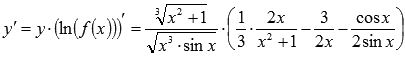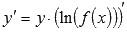 Подставляем полученный результат в формулу логарифмической производной и получаем ответ: