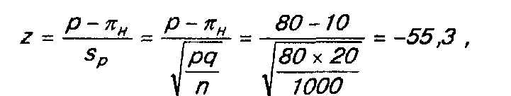 Видно, что первоначальная гипотеза отличалась от найденных 80% на величину 55,3, умноженную на среднеквадратическую ошибку, т.е. не может быть признана достоверной.