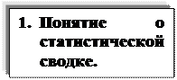 Основная цель и содержание статистической сводки состоит в том, чтобы, обобщив материл, дать полную и объективную характеристику всей совокупности фактов, вскрыть закономерности массовых процессов, которые в нем содержатся и которые проявляются в обобщающих показателях.